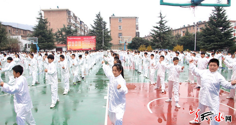 开班仪式结束后,各位领导和学员一同观看了教学示范表演,并先后到市六中、伏羲中学、枣园巷小学、市体育运动学校,观看了武术操展演、伏羲太极拳展演及武术健身操展演。