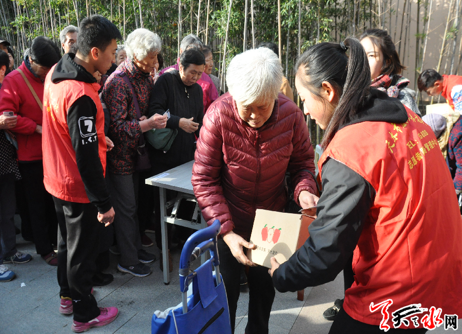 据了解,此次爱心活动由天水市民政局、天水市虚拟养老院主办,甘肃永强建设集团、甘肃德丰农业有限公司、甘肃商帮电子商务有限公司发起的。活动为天水市虚拟养老院的老人免费发放了1000箱共计6000斤爱心苹果。整个现场人潮涌动,老人们喜笑颜开,气氛热烈,活动现场这股强大的暖流温热了这个寒秋。
