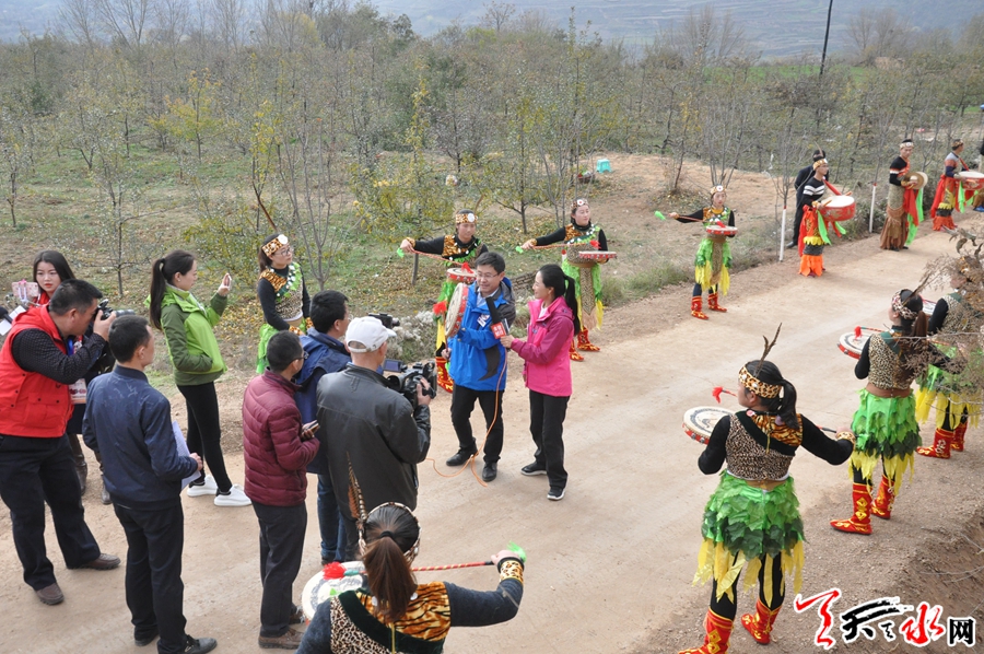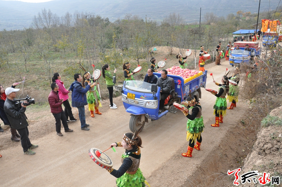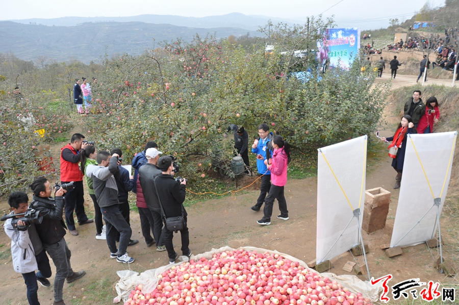 直播现场选在远门镇夜明村的苹果园里,当天上午的直播在铿锵浑厚的轩辕鼓舞声中拉开帷幕,摘苹果比赛、清水小曲、有奖问答、秦腔演唱、木人摔跤和为本次活动专门编排的快板《夸苹果》等节目全部选用清水当地文艺人员和夜明村果农,精彩纷呈的一系列节目,将网络直播接地气的平民优势,发挥的淋漓尽致。
