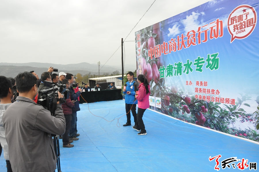 天天天水网讯(记者 刘晓亚)11月4日,中央电视台财经频道联合国内15家知名电商平台和30家网络直播平台同步直播“厉害了我的国--中国电商扶贫行动清水专场”在清水县远门镇夜明村进行。