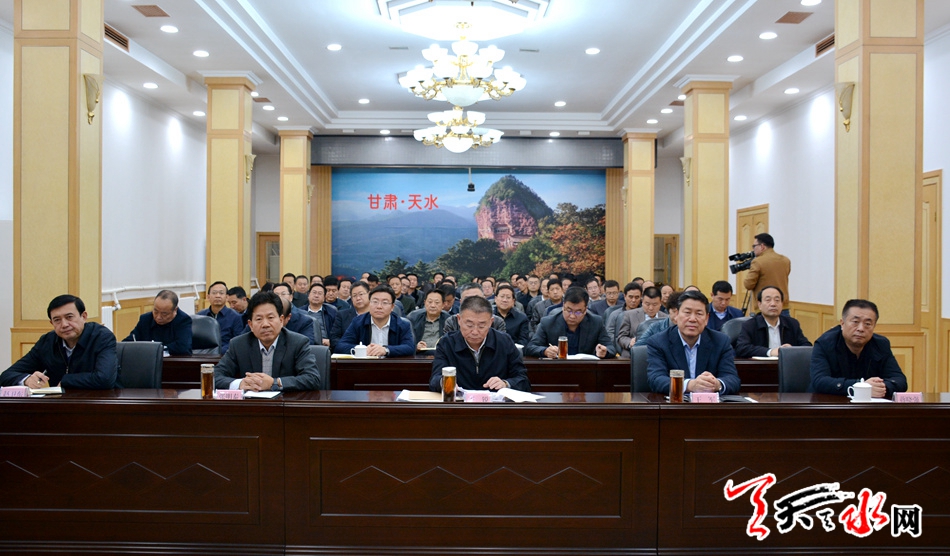 宣讲报告会以视频会议形式举行。市领导王锐、王军、张明泰、蒋晓强、赵卫东、蒲军、王正茂、李晓东、温利平、宫辉等在天水分会场收看。