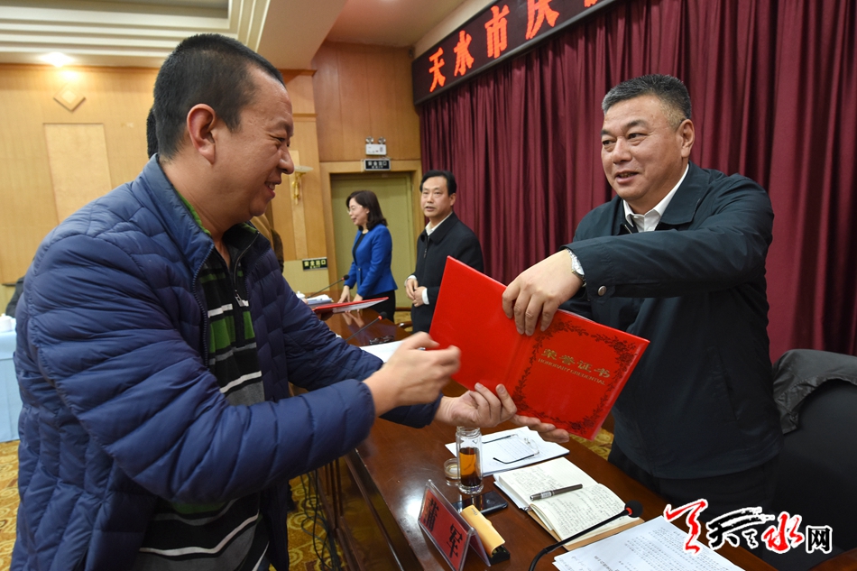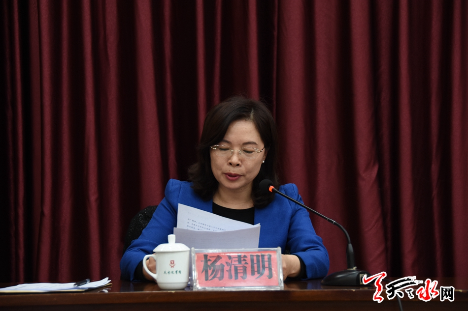 ▲天水广播电视台台长、市记协副主席杨清明宣读省、市有关表彰决定