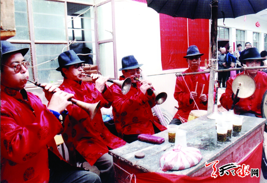 秦安民间唢呐在民间为人民群众所喜闻乐见,历史上一贯是农忙劳作,农闲演出,鼎盛时期曾组班成百个,主要用于婚嫁、丧葬、庆礼、社火等活动中,以民间班社形式存在,流传下来的曲牌多达40余种。