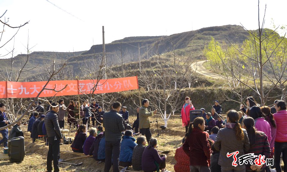 11月15日,记者随同“我为新甘肃打‘call’” 全省网络媒体大型主题采访团一行走进马沟新 村,正好赶上一场十九大精神文艺宣传队文化大汇演,一曲曲秦腔唱得或婉转百折,或雷霆万钧, 引得满喝彩,村民们自编自演的快板,更是唱出了村民对美好生活的憧憬:“各级组织抓党建,村 官由咋群众选,新农村建设很规范,配套设施很齐全,有学校,有商店,合作医疗卫生站,农家书 屋读书室,读书看报学知识……”