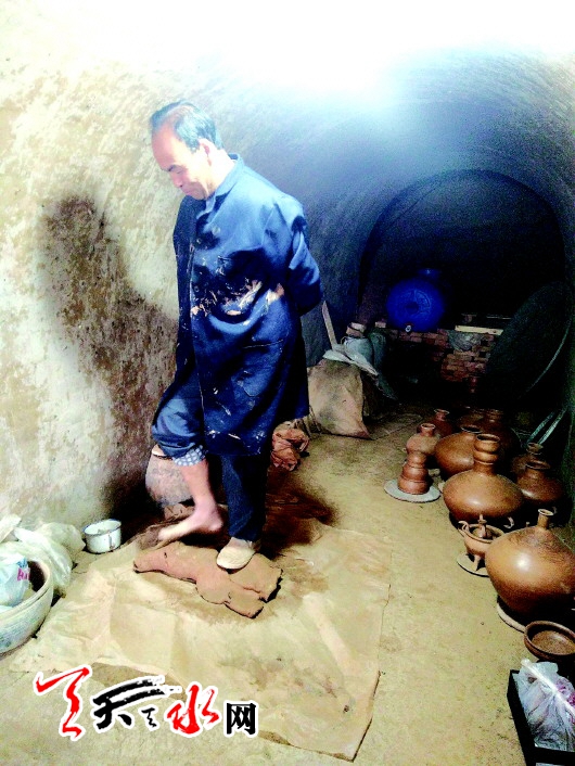 “从取材到制作烧制完成,手工制陶根据窑的大小、用时不同,烧制一大窑陶器大概需要二十多天至月余。”康旺才告诉记者,取土、晒土、筛土,再到泡泥、踩泥、拉坯,通常手工制陶少说也得十多道工序,其中踩泥则是一项非常重要的工序。通常和好的泥经过脚反复揉踩,可以把沙石、柴签等杂质剔除,泥踩的好坏可谓决定着陶器的品质。为了给记者展示踩泥工序,憨厚的康旺才又麻利地脱下鞋袜现场演示起来,并笑着说:“我们庄稼人的脚不怕冻。”