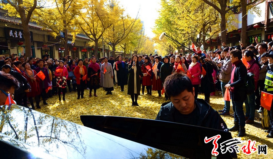 据了解,11月9日—11月12日的“黄金大道”狂欢节给广大市民创造了观赏、休闲、游乐的城市落叶景观道环境,打造了青年北路银杏“黄金大道”,一时成为人们的美谈,更是刷爆了天水人的朋友圈。在“黄金大道”狂欢节期间,青年北路成了欢乐的海洋:“大秦勇士”手持金戈铿锵走来,天女飞落人间散花,“快闪”合唱《我爱你,中国》,以及幼儿国学、少儿武术、古筝表演、《四大名著》合唱等一系列展演活动,将“黄金大道”的狂欢活动一次次推向高潮。金黄街道上色彩鲜艳的表演者,涌动而欢闹的人群,成为寒意渐浓的初冬里最温暖的一簇火苗。