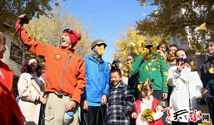 11月8日,秦州区政府将铺满金黄银杏叶的青年北路正式命名为“黄金大道”,供市民观赏游玩。自当日起,“黄金大道”上人流如织,热闹非凡。