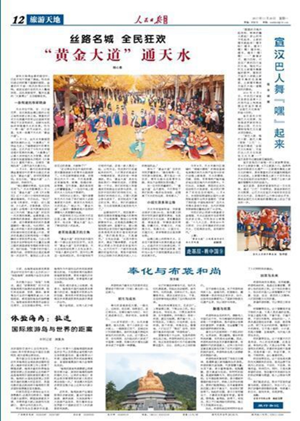 天天天水网讯【记者陈少娟】11月20日的《人民日报海外版》第12版旅游天地头条刊发了《丝路名城 全民狂风 “黄金大道”通天水》一文,向全世界推介天水“黄金大道”。