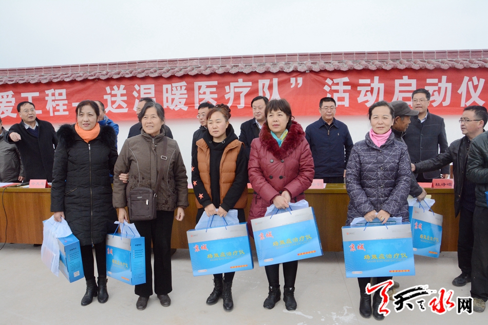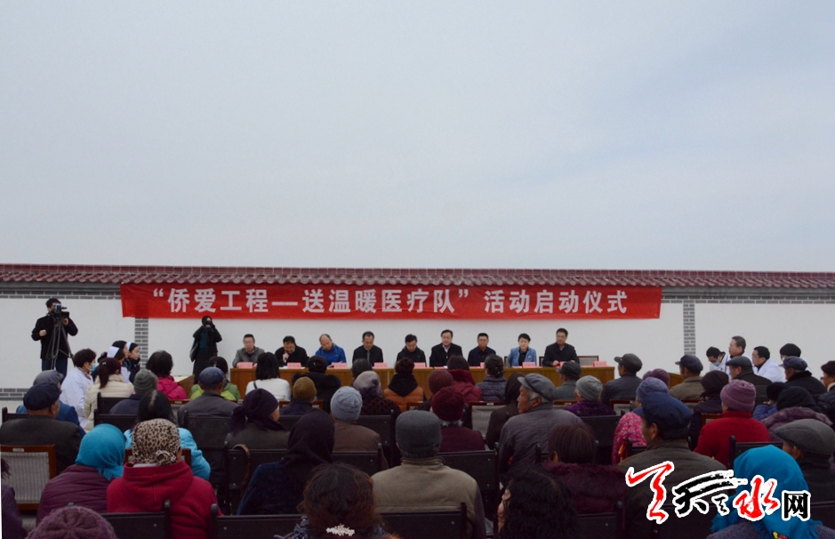 天天天水网讯【记者杨璟】11月22日,“侨爱工程——送温暖医疗队”活动启动仪式在麦积区新阳镇坚山村举行。省政府侨务办主任张宝军宣布活动启动,并为归侨侨眷和当地群众宣讲了党的十九大精神。