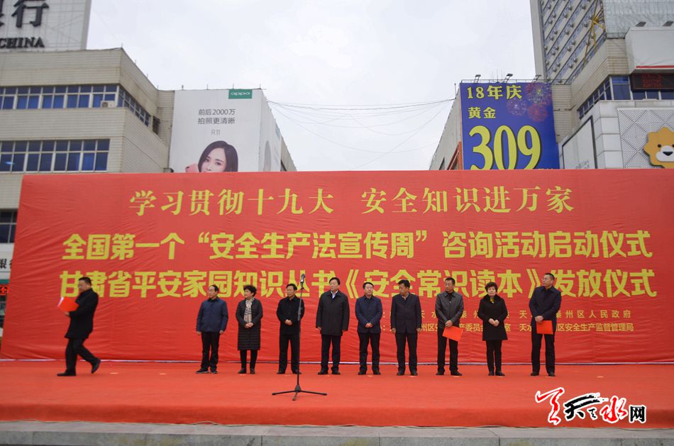 天天天水网讯【记者 张文都】12月1日,秦州区在市龙城广场启动全国第一个“安全生产法宣传周”咨询活动暨甘肃省平安家园知识丛书《安全常识读本》发放仪式。