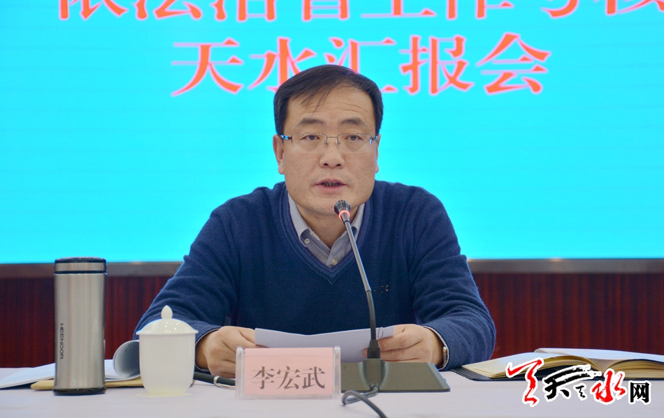 李宏武对我市综治维稳反邪教执法监督依法治市工作给予充分肯定。他指出,天水市委、市政府认真贯彻落实中央和省上关于政法工作的部署要求,社会治安综合治理领导责任制得到扎实落实,政法综治基层基础进一步夯实,在社会治理能力提升工作方面做了积极探索,综治维稳反邪教执法监督依法治市各项工作任务圆满完成、成效显著。