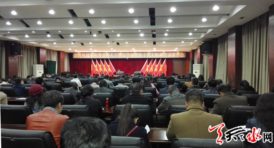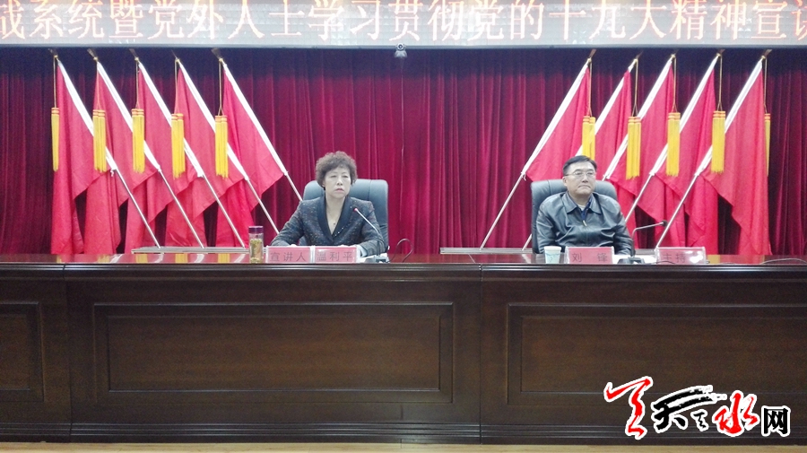天天天水网讯【记者胡丽霞】12月5日,市委常委、统战部长温利平为统战系统干部职工和党外代表人士宣讲十九大精神。