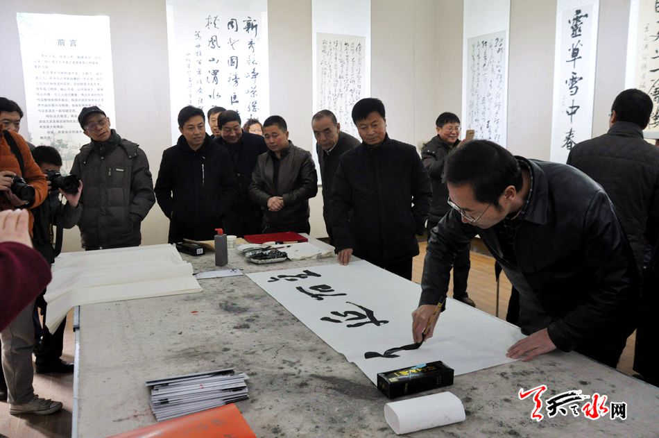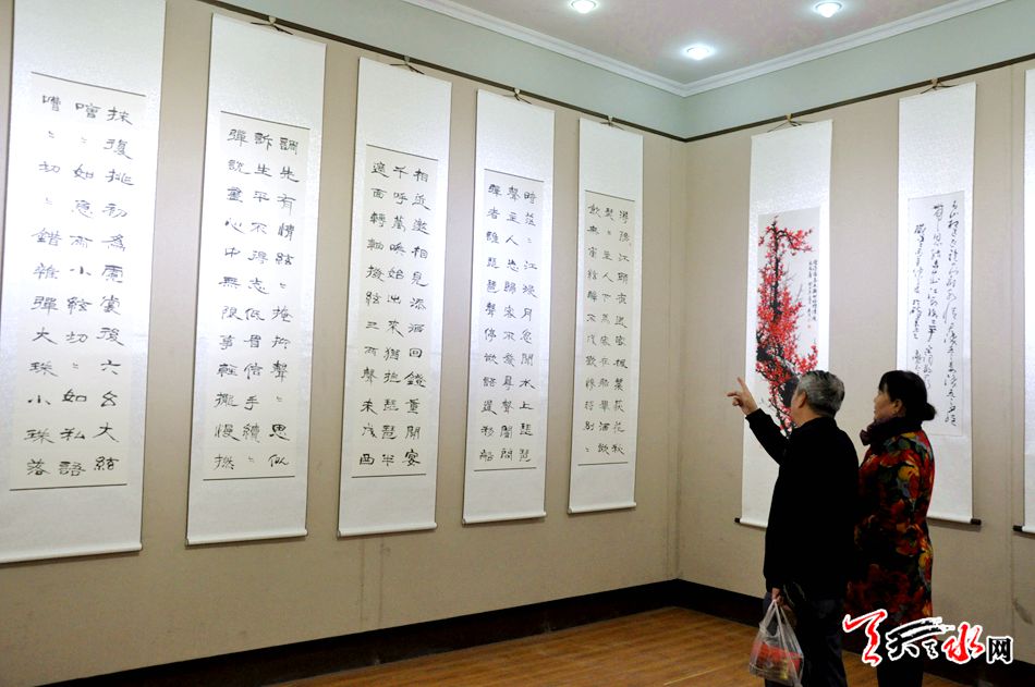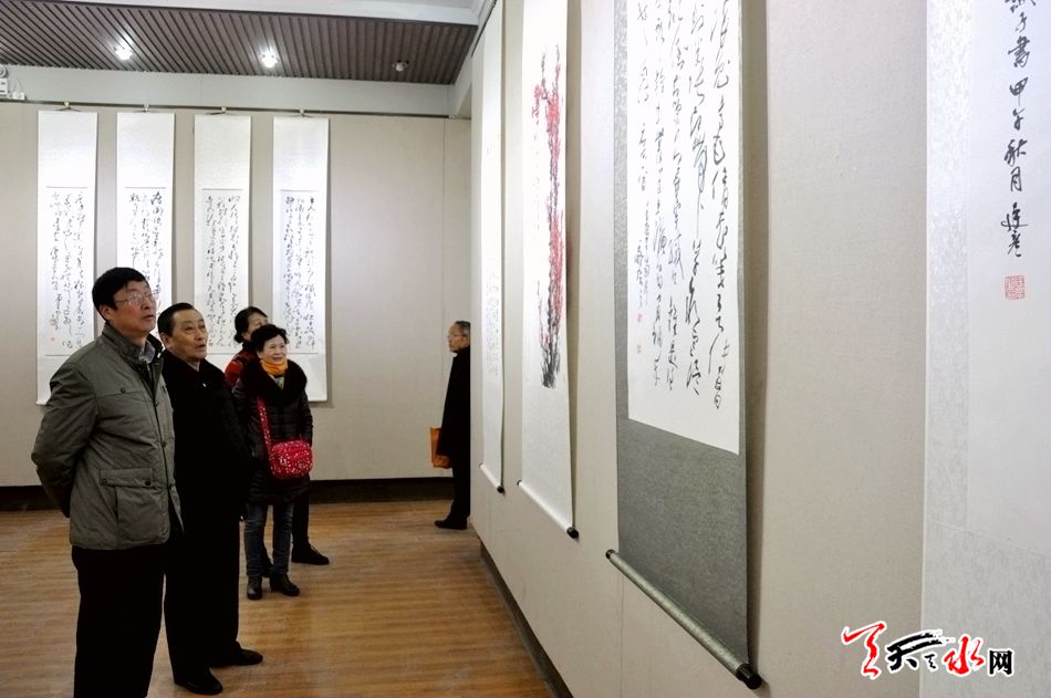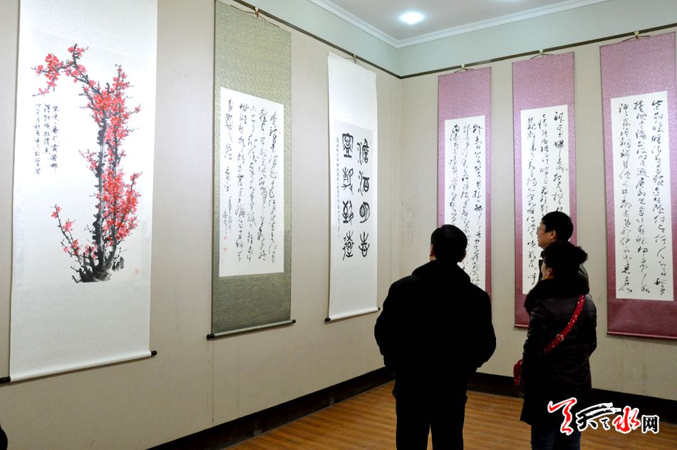 天天天水网讯【记者 张文都】12月8日,来自渭水河畔的温子安、王鹏飞、温庭彦三人书画作品展在天水市文化馆隆重开展,一百多幅墨韵飞扬的书画作品让参观者大饱眼福,乐在其中。