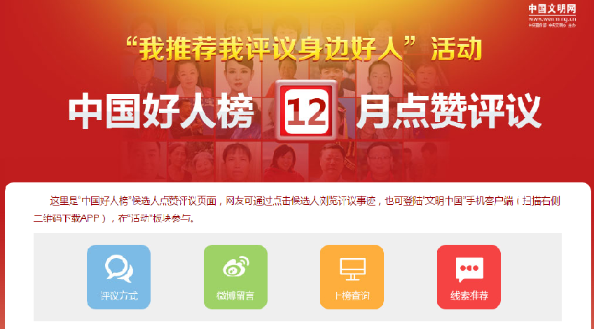 天天天水网讯 由中央文明办主办、中国文明网承办的“我推荐我评议身边好人”活动中,天水2人入围2017年12月“中国好人榜”助人为乐类候选人名单,分别为全国无偿献血奉献奖金奖获得者保得元(2号候选人)和天水师范学院教师漆爱红(42号候选人)。中国文明网将对候选人进行为期一个月的集中宣传展示,广大市民可登录中国文明网“中国好人榜”活动专题页面,为两位“天水好人”点赞评议。投票网址:(http://aaq.wenming.cn/seniorset/data/4f87fb3a2e39a946288c68d15c63f7f6/indexTz.html?str=20171213103159)。