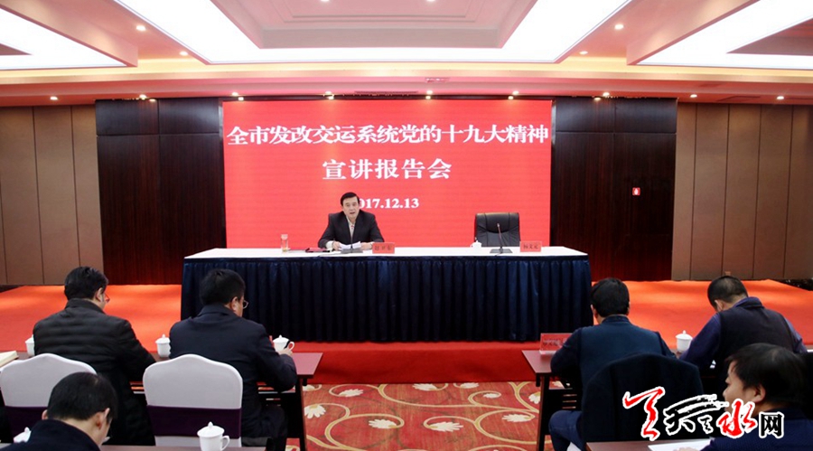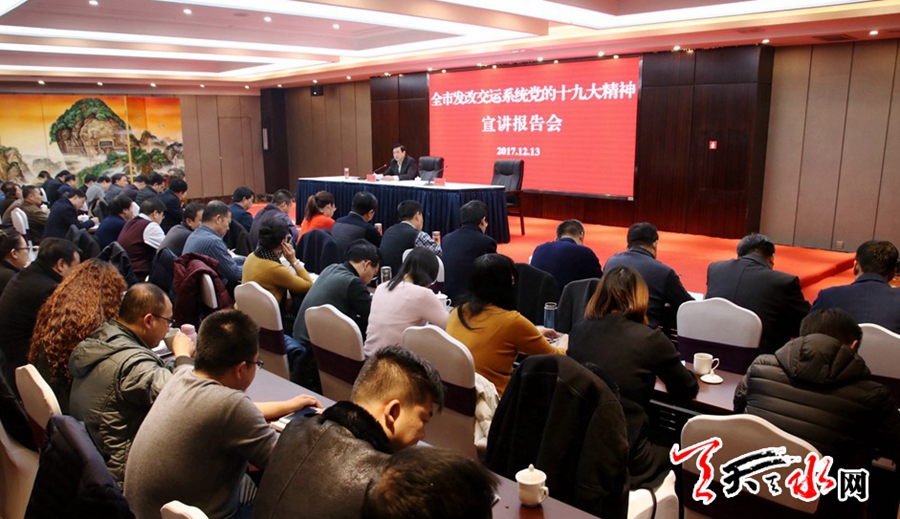 天天天水网讯【记者徐媛】12月13日,市委常委、常务副市长赵卫东为全市发改和交运系统干部职工作了党的十九大精神宣讲辅导。