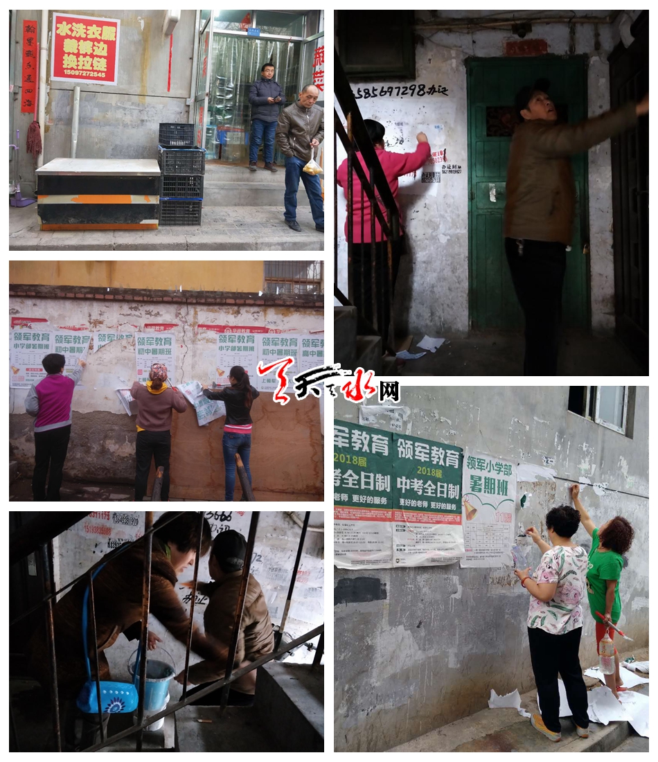 自“全域无垃圾”创建工作开展以来,该社区迅速行动,成立了全域无垃圾领导小组,指定专人负责工作,将社区综治、卫生、环保、防汛、消防网格五网合一,进一步细化了区域,做到了责任到人。与此同时,该社区还在重点路段张贴了集全域无垃圾、门前三包、居民卫生公约、十不准等为一体的宣传画,在大型小区制作了温馨提示小标牌,力争将该活动开展情况做到家喻户晓,人人皆知。在此基础上,该社区还利用周五社会卫生日活动,每周五组织社区居民、党员、志愿者等,在重点路段、重点区域开展卫生大整治,铲除乱涂乱画,清运陈年垃圾,并督促检查门店卫生,落实门前三包,清洗辖区花园护栏,路边栏杆,并成立专门保洁队伍,对沿街主要路段、花园进行保洁,对三无小区成立专门清扫队伍,对重点区域进行了集中整治清理,彻底铲除了“垃圾顽疾”这个毒瘤。