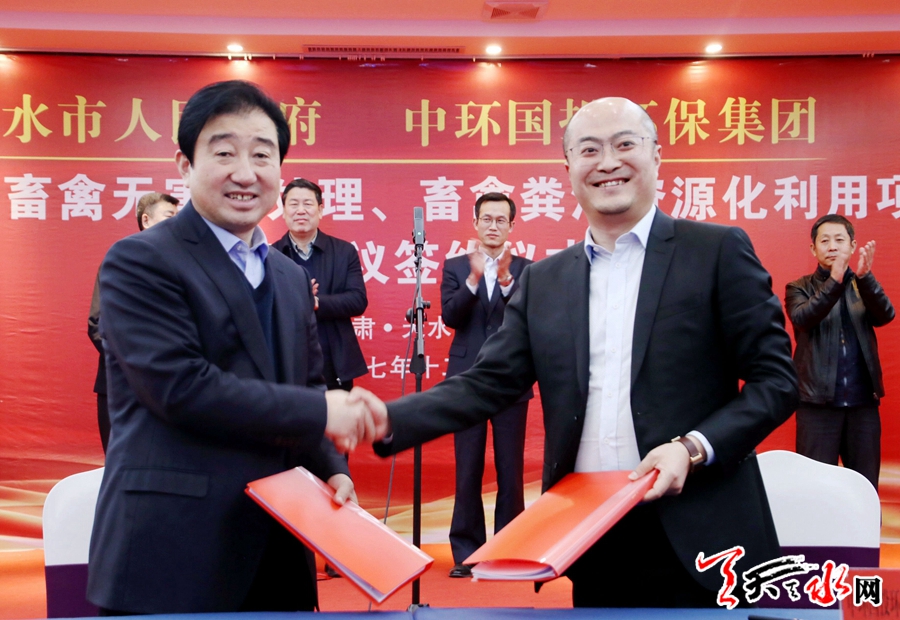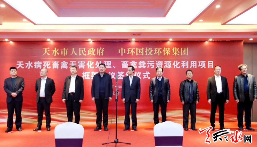 天天天水网讯【全媒体记者冯丽娟】12月15日,市政府与中环国投环保集团有限公司举行天水病死畜禽无害化处理、畜禽粪污资源化利用项目框架协议签约仪式。这是我市践行绿色发展理念,落实环保法律法规,加强生态环境保护工作的一项重要举措。