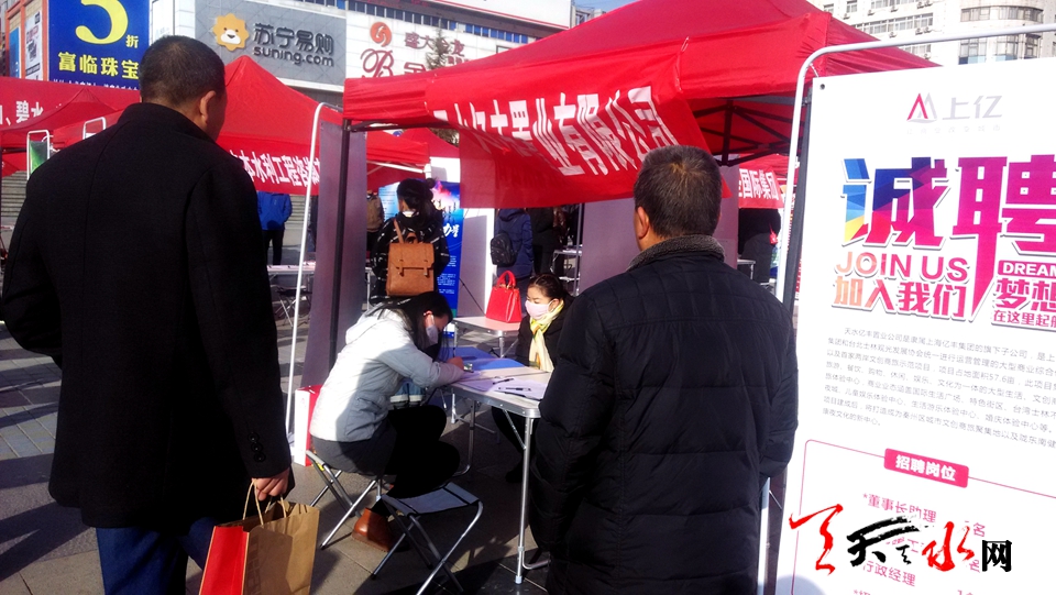 天天天水网讯(记者何永德)12月16日上午,由天水市总工会主办,天水市总工会就业服务中心承办的2017工会冬季就业专场招聘会暨高校毕业生专场招聘会在龙城广场举行。参加应聘的1000多人次,达成意向签订100多人次。