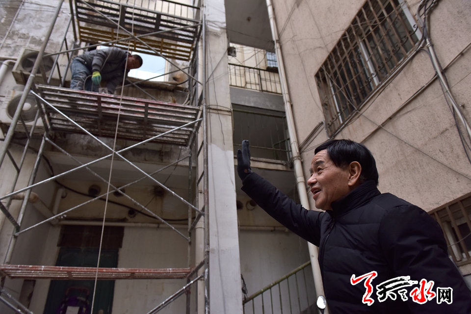 目前小区外在的环境卫生得到了改观,但由于小区内和管道和电线已步入老化期,由此而引发困扰居民的一些日常问题也随之而来,近日,记者在该小区采访时,张宗骞老人正在小区内协助粉刷工粉刷小区内的墙面,“昨天凌晨两点多,就有住户打电话说,水管子漏水,象这样的事,在我们小区也是时有发生,你还得为他们解决困难。”他就是这一样有责任心的“热心肠”。
