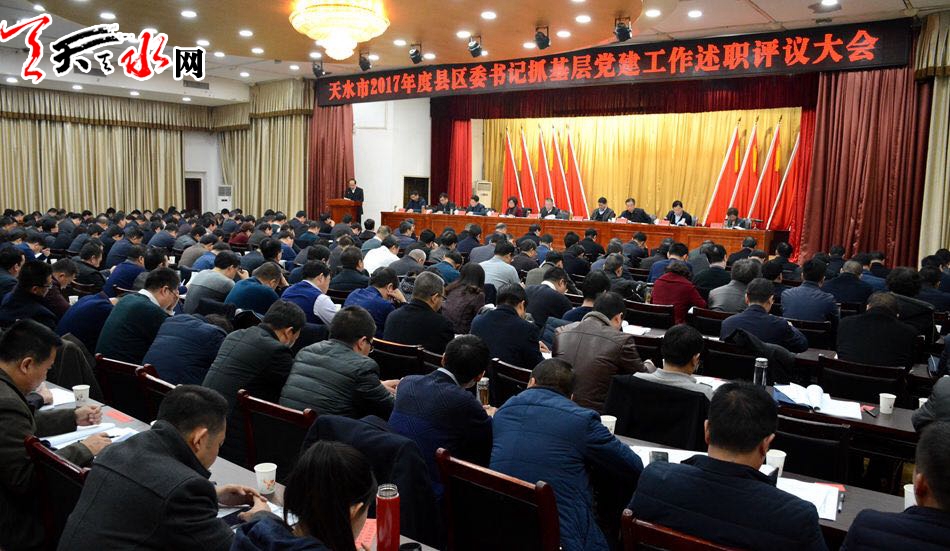 天天天水网讯 【全媒体记者 王晓馨】12月21日下午,天水市2017年度县区委书记抓基层党建工作述职评议大会召开。市委书记王锐主持会议并强调,要认真学习贯彻党的十九大精神,以习近平新时代中国特色社会主义思想为指导,全面贯彻落实新时代党的建设总要求,以提升组织力为重点,强功能、抓基本、补短板,把全市基层组织建设提高到一个新水平。