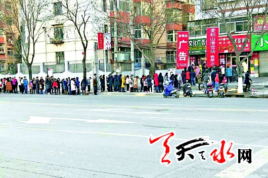 这位负责人说,他们作为企业搞这次集赞兑换门票的活动,确实是极大地让利于市民,让市民不掏钱就能开心的去滑雪,受到了广大市民的关注和参与。可是没想到消息发出后网友的点击率这么高,远远超出了他们的预计数目。他们在秦州和麦积两区设置了两个换票点为市民免费发放门票,每个换票点每天发放1千张票,一共兑换5天时间,共1万张票。但是基本上来排队领票的每个人都集了68个赞以上,也就是说几乎每个人都领了2张票,38个赞领1张票的人是极个别的。所以,每个点每天排队的人最多需要200多人就足够了,可实际上每天排队的人非常多,工作人员只好一到下午两点就圈定排队的人数范围,提醒范围之内的人能领到票继续排队,而范围之外的人不用再排队了,要不然就会白白排队浪费时间还受冻。