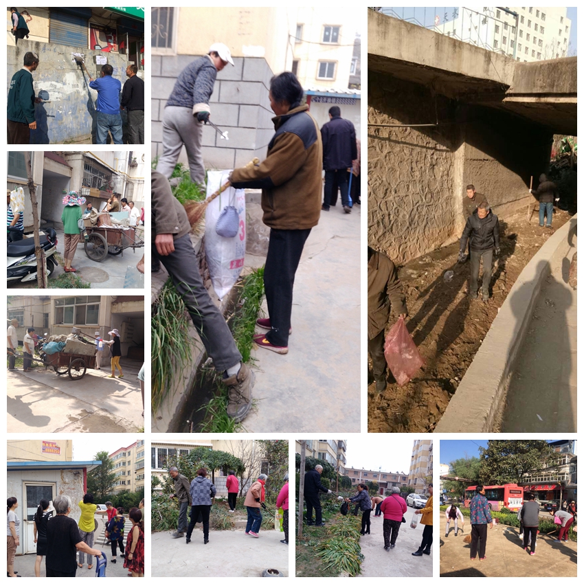 这些客观存在问题,在开展全域无垃圾创建工作中,形成的工作瓶颈,并没有让王家磨社区在此次创建工作中停滞不前。创建中她们坚持把整治与保持并重、宣传与引导并举,以治理脏乱差为重点,对居民院落、河道、道路沿线等重点区域、重点部位、重点地段环境进行严格整治。自开展全域无垃圾创建工作以共组织卫生整治20次,发动辖区单位干部职工、居民、志愿者党员等共1600余人次参加活动,深入到辖区背街小巷、居民、院落清理死角23处,清理小广告360余条,清运各类垃圾2余吨。自8月份以来集中力量对背街小巷内的乱张贴、乱喷涂、乱贴画、小广告等进行了彻底地清理,绿化带内的枯枝败叶、滞留垃圾,确保无纸屑、烟头、塑料袋、果皮等杂物;协同综合执法局对安民家园、市卫校周边占道经营、店外经营等不良秩序。开展“地毯式”垃圾清理清扫。在五公司、精表小区集中开展乱堆乱放杂物清理、垃圾清扫活动。