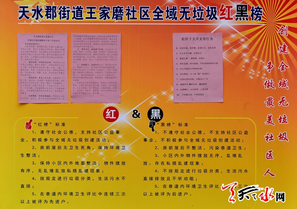 这是一个处在城乡结合部的老旧社区,垃圾弃物堆积面广,范围大已成为这个社区在开展全域无垃圾创建活动中最大的难题,如何让这一惠及百姓的民生工程得以有效实施,天水郡街道王家磨社区在创建活动中,合力精准把脉,对症下药,开出了一剂卓有成效的药方。