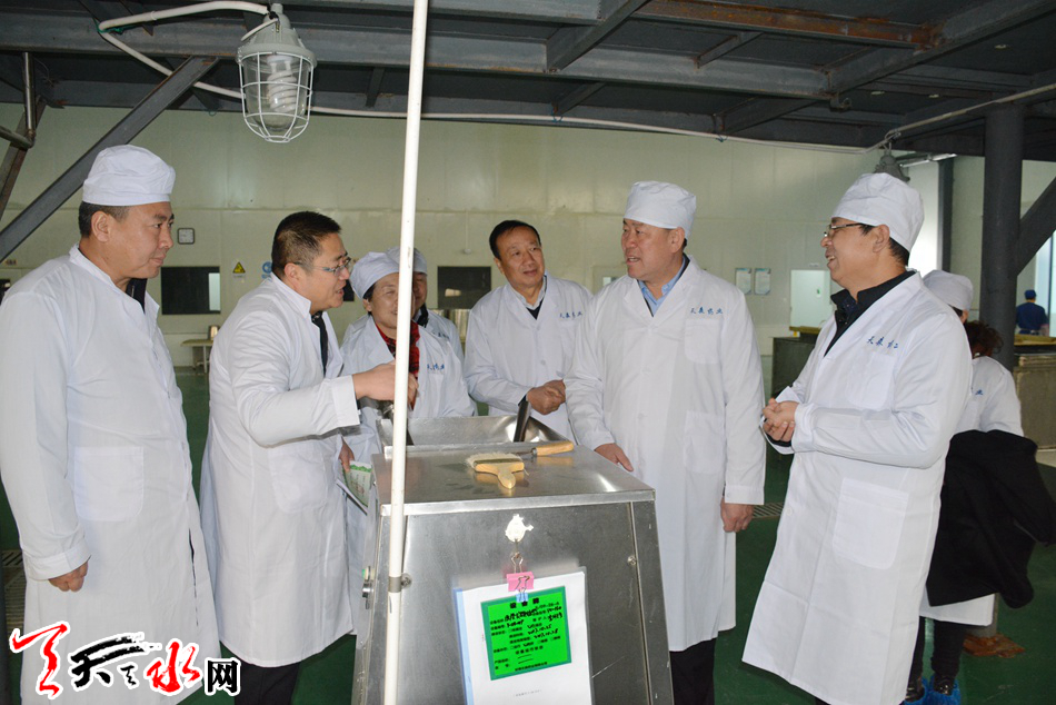 王军一行首先来到甘肃信谊天森药业有限公司,该公司是集新产品研发、经营的综合性生物制药高新技术企业。在实地察看了生产车间、听取了与上药集团合作情况的汇报后,王军指出,通过与上药集团合作,天森药业已建立起成熟的现代企业管理机制和销售网络,接下来要进一步抢抓机遇,尽快启动建设中药材种植基地项目,使企业在快速发展的同时为天水经济发展多作贡献。