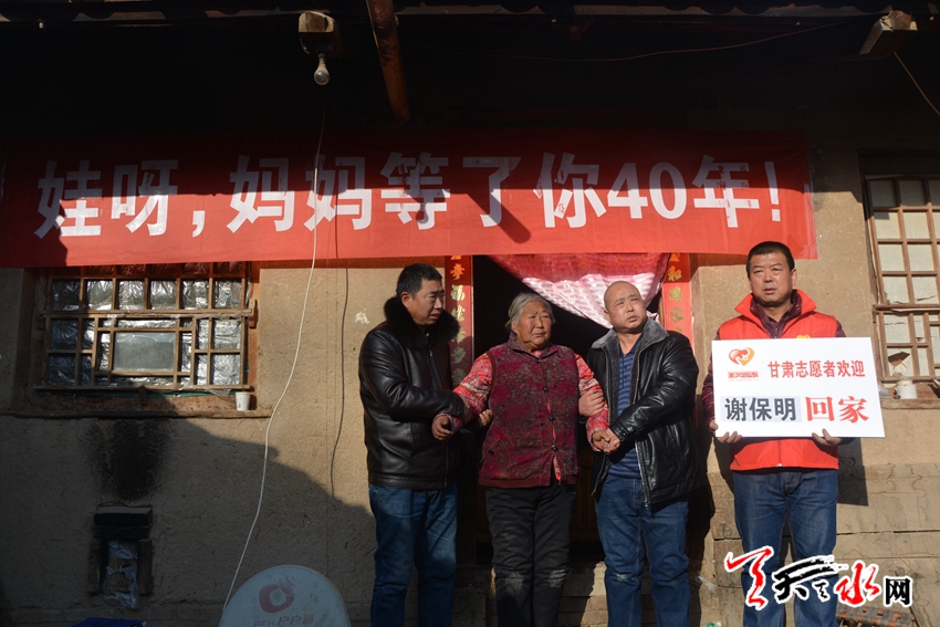 下午15时许,甘谷县新兴镇颉家庄村鞭炮声阵阵,乡亲们将谢保明家的老院子围了个里三层外三层。见到母亲,谢保明“扑通”一声跪在地上,哭着说道:“妈妈,儿子回来了。”77岁的刘板娃早已泣不成声,紧紧攥着谢保明的手说:“找到你,我死就能闭上眼睛了,你爸爸没等住你,他就是急得哭死了啊!”