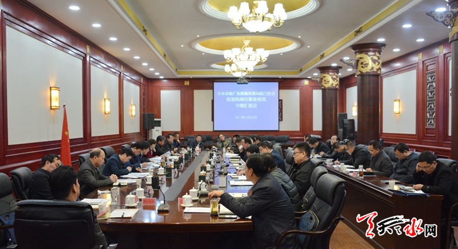 天天天水网讯【记者李欣桐】12月25日,市委常委、常务副市长赵卫东主持召开我市赴广东招商及第24届兰洽会拟签约项目准备情况专题汇报会。会上,听取各县区、市直各有关部门关于赴广东考察招商准备和招商引资拟签约项目情况的汇报。市委常委、副市长李晓东出席会议。