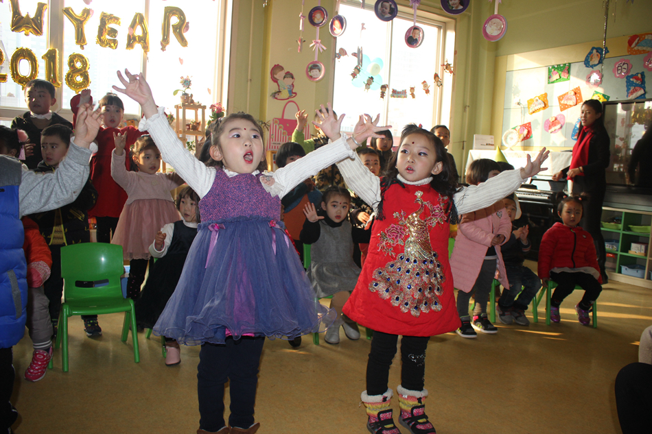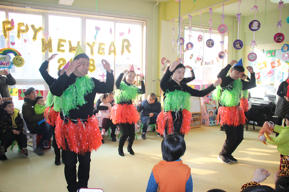 “庆元旦 迎新年”系列庆祝活动由“庆元旦 迎新年”汇报演出和亲子游艺活动组成组成。孩子们在各自班级老师的带领下,给爸爸妈妈们表演了平时在幼儿园学到的歌曲、舞蹈和诗词,家长们也纷纷各展所长,为孩子们表演了情景剧、诗词朗诵、儿歌舞蹈等孩子们喜闻乐见的节目。汇报演出结束后,孩子们和家长在幼儿园院内开展了丰富多彩的亲子游艺活动。“何家公鸡何家猜”、“恭贺新年”等互动项目,让让孩子们通过与家长共同参与活动来表现自己,与家长共同体验节日的幸福。