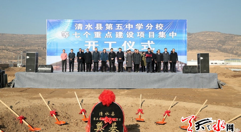 清水县集中开工第五中学分校、永清镇中心敬老院、国电投清水县30兆瓦光伏扶贫电站等7个重点项目