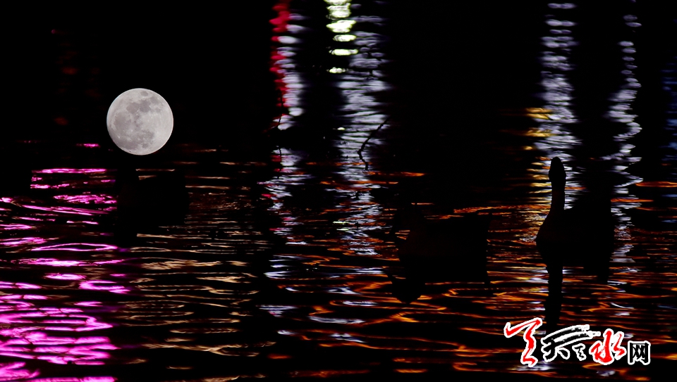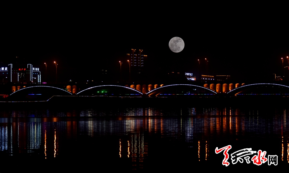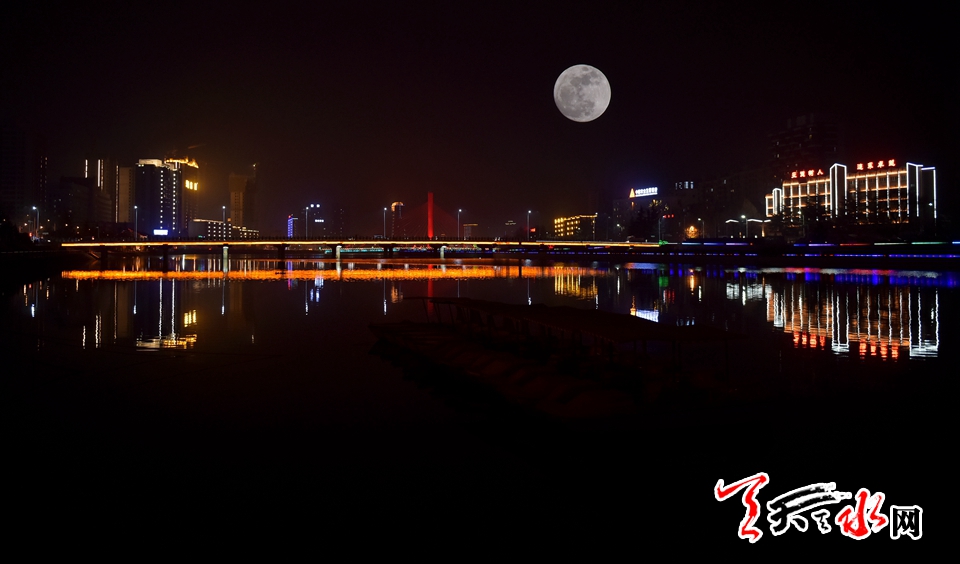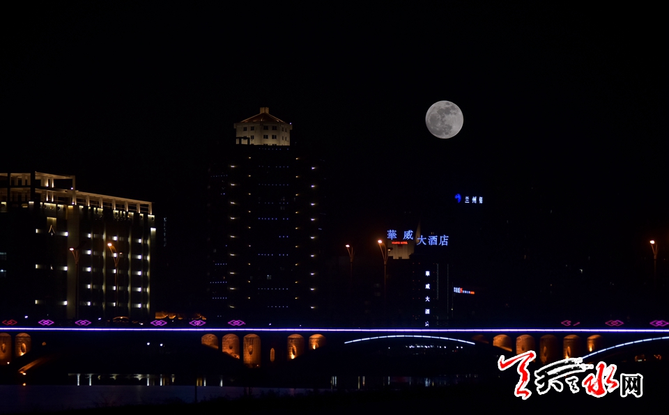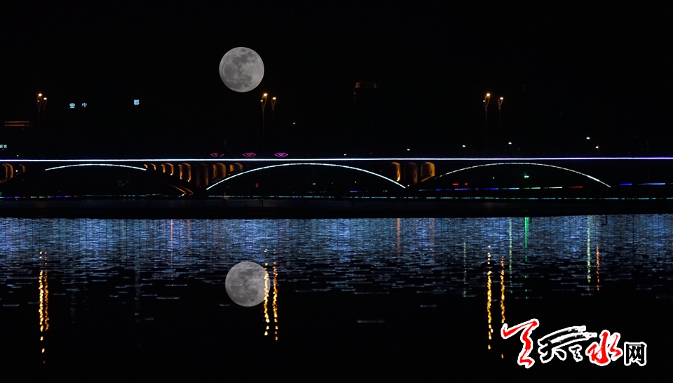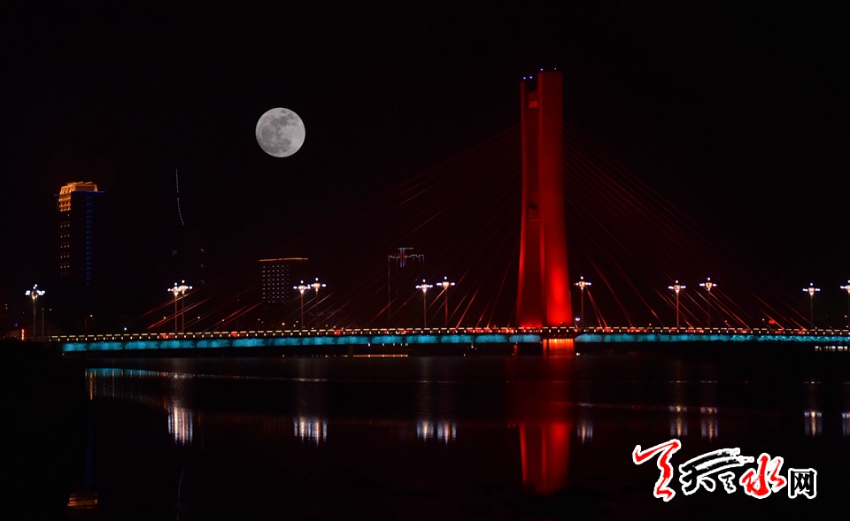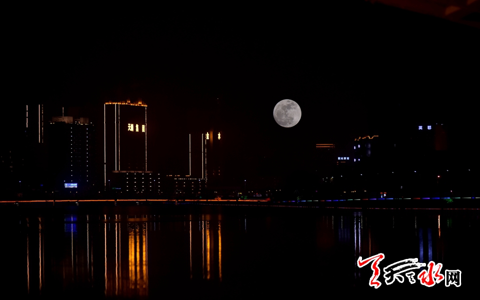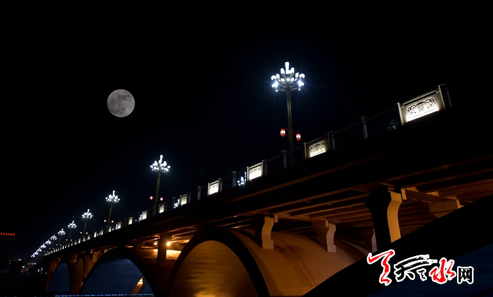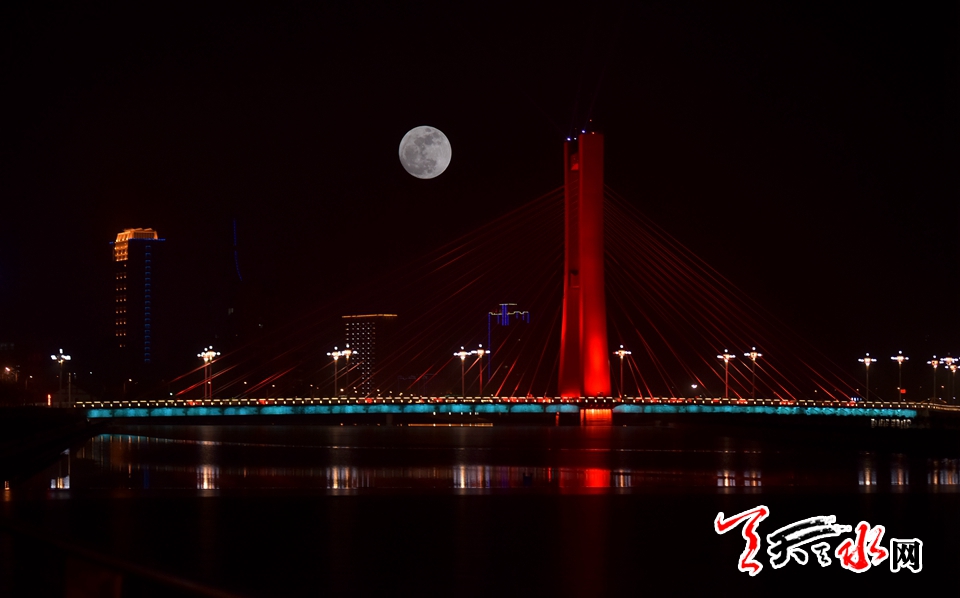 天天天水网讯(记者何永德)2018年元旦“超级月亮”再现龙城天水夜空,成为新年首日意外的天文大礼。人们在共赏这皓月中迎来了2018新的一年。