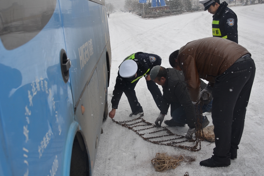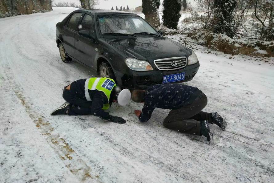 秦安县公安局交警大队雪天齐出动保安全。大队全体民协警迅速到岗到位,在大队主要领导的安排部署下,采取固定执勤和巡逻执勤相结合的方式,加大对辖区内重点路口、事故多发点段的管控力度,提高见警率和民警管事率;通过鸣笛、喊话警示、劝导、亲自帮过往车辆安装防滑链等措施,加强对过往车辆的指挥疏导;利用微信公众平台发布信息,进行交通安全宣传,提醒过往司机雪天减速慢行,保持安全车距,注意行车安全。