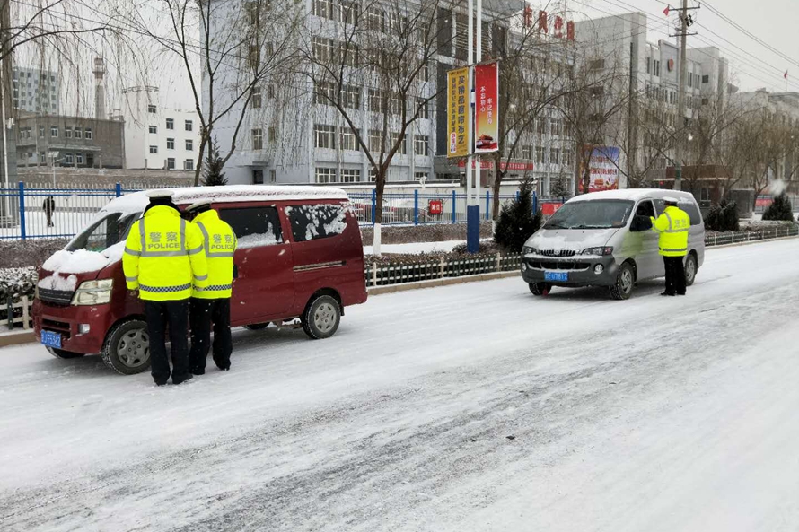 武山县公安局交警大队快速反应积极应对降雪天气。大队加强坡道、弯道、事故多发及易结冰、积雪等路段执勤巡逻和交通疏导,及时处置警情;在城乡结合部和村镇等重点路段设置执勤点位,加大检查力度,引导车辆安装防滑链,降低车速有序通行,并要求农村劝导站全面开展封路、劝导等工作;向辖区运输企业发布恶劣天气预警信息,督促运输企业做好安全防护;利用短信平台、微信平台、互联网等媒体广泛开展降雪冰冻天气安全驾驶技能宣传,提高驾驶人应急处置能力,同时不间断发布路况和通行信息,引导驾驶人合理选择出行时间、线路。
