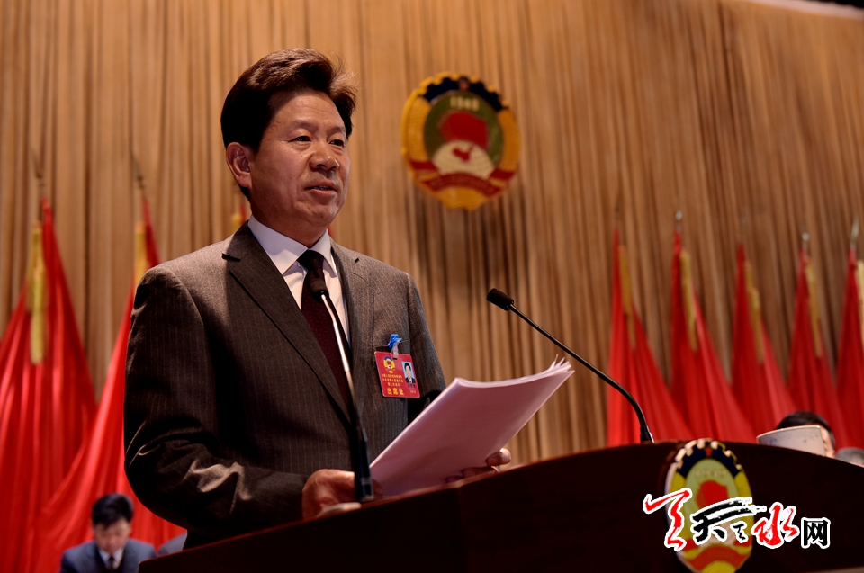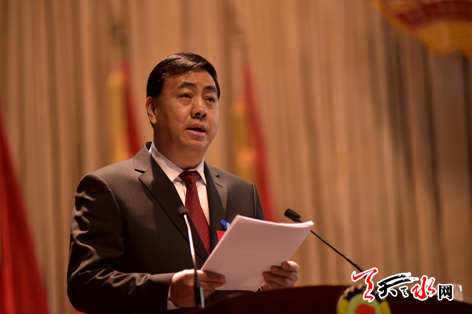 市政协党组书记、主席张明泰同志代表政协天水市第七届委员会常务委员会作了工作报告