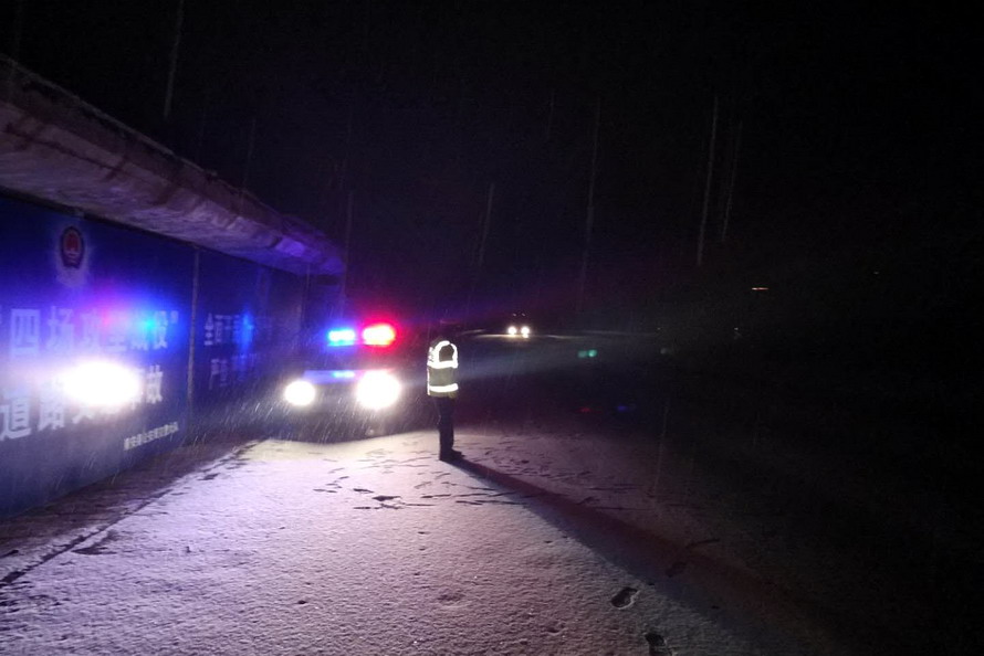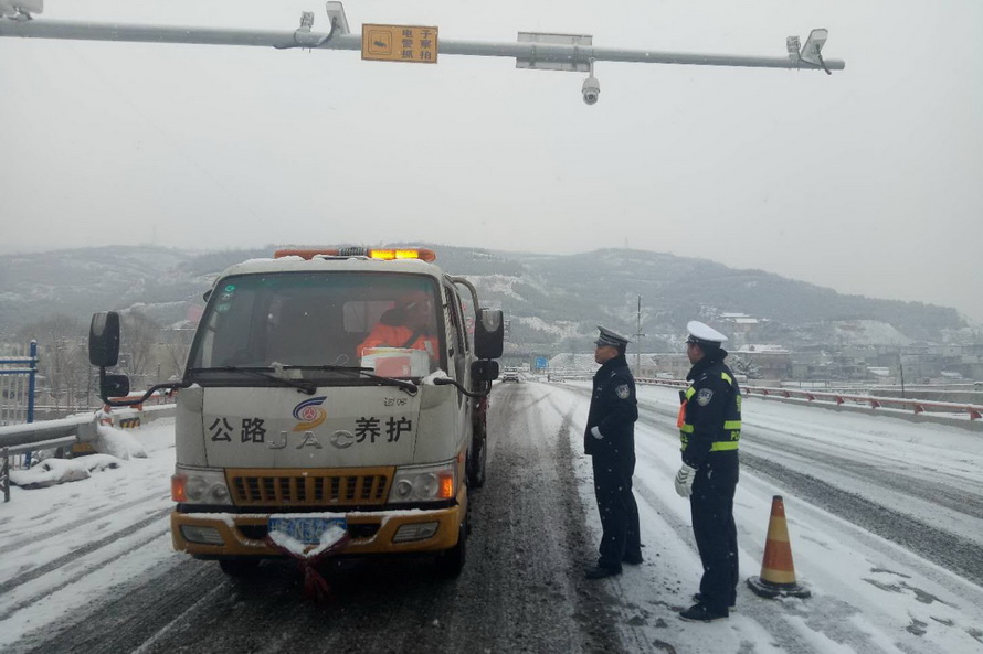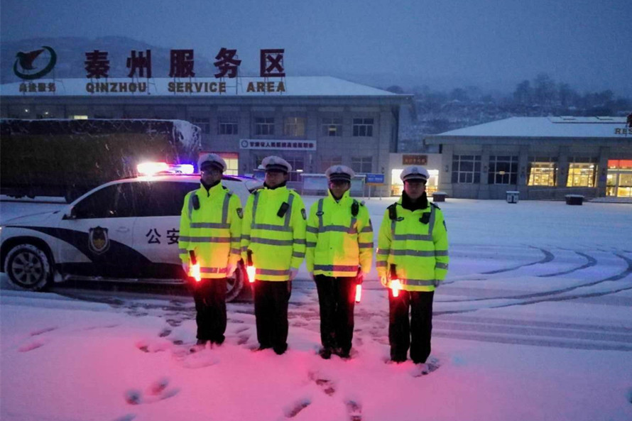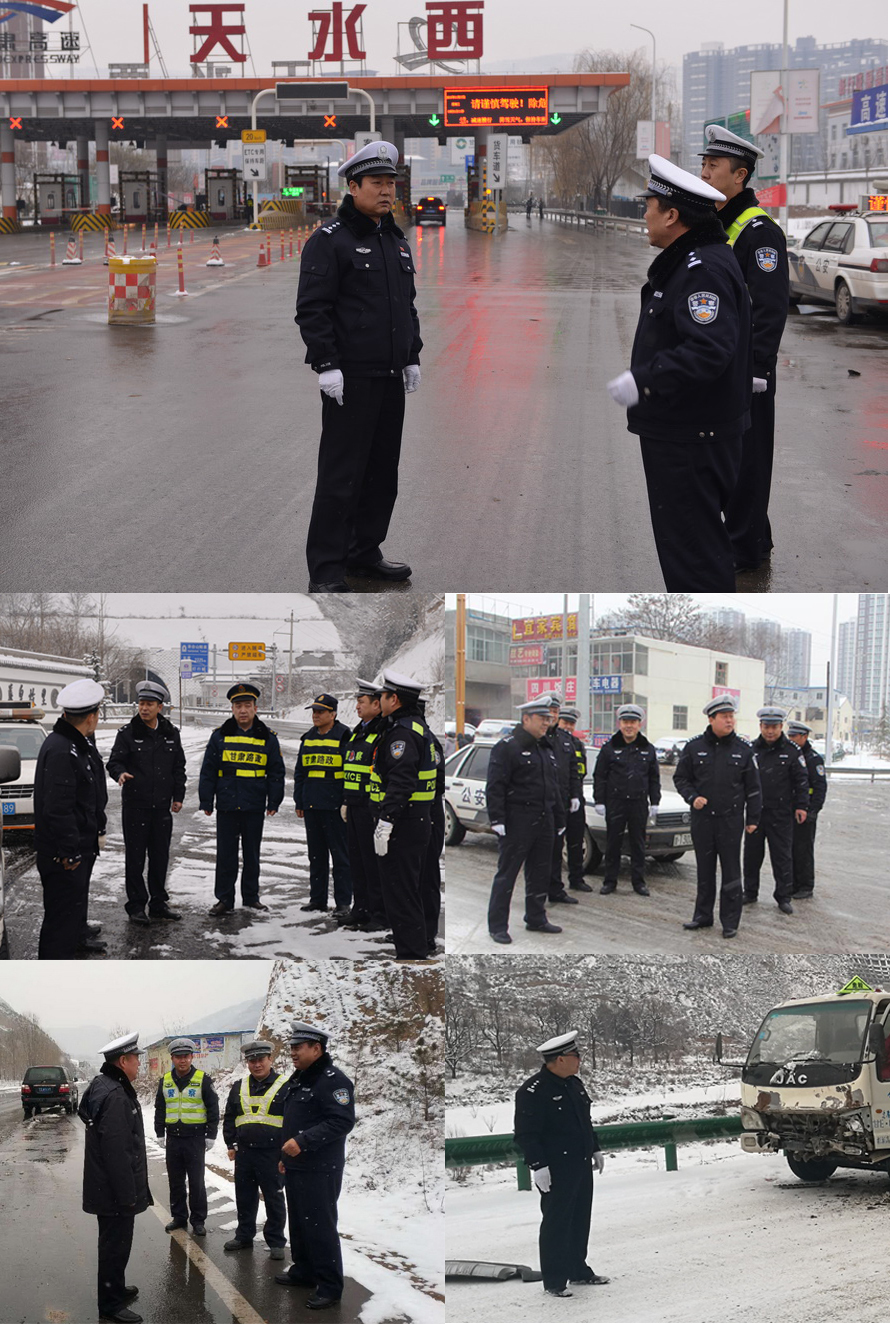 麦积公安分局交警大队领导分工包片,全员上路执勤,出动警力220人次奔赴全区各乡镇、重点路段、路口,冒着大雪指挥疏导交通。