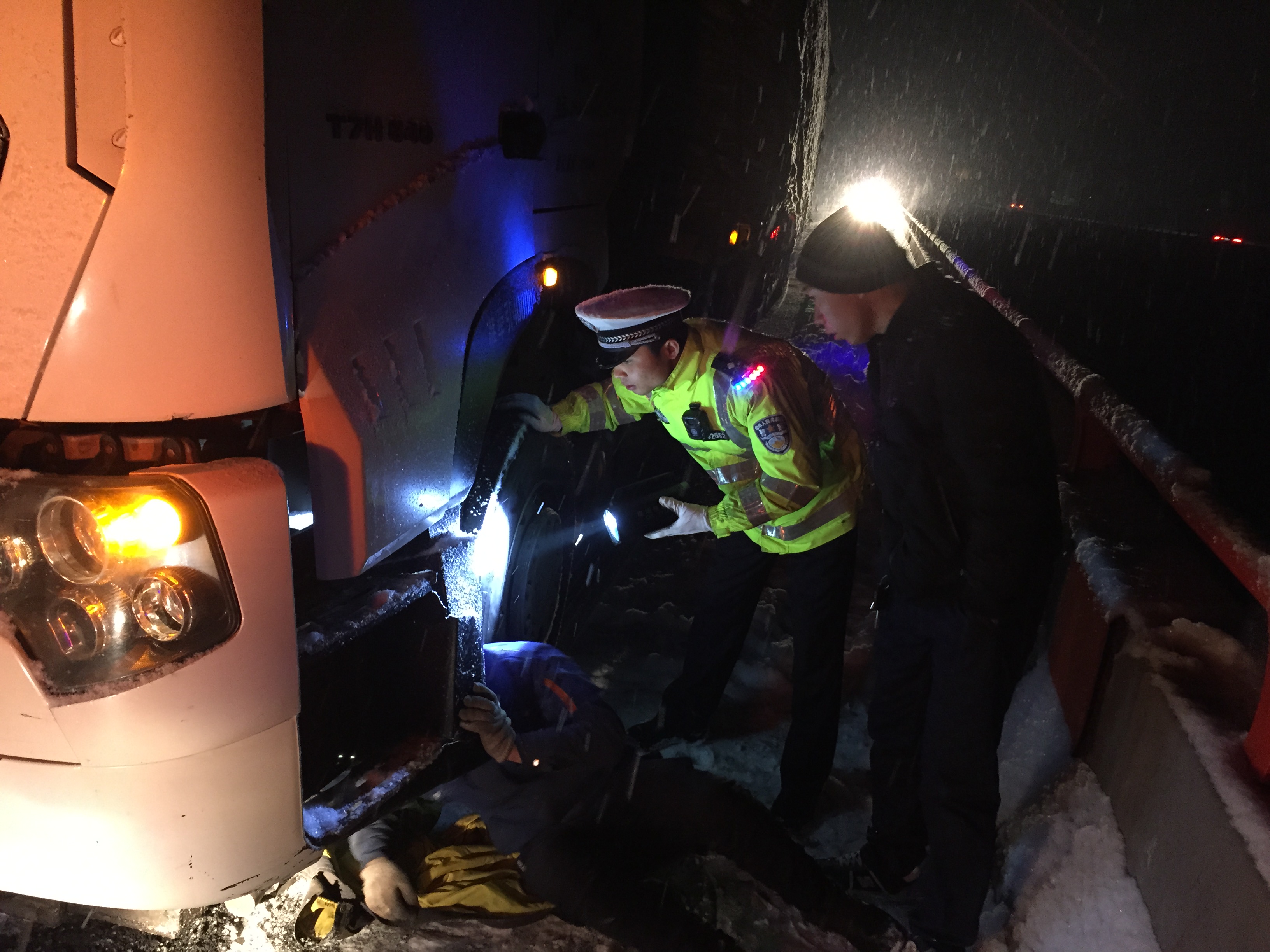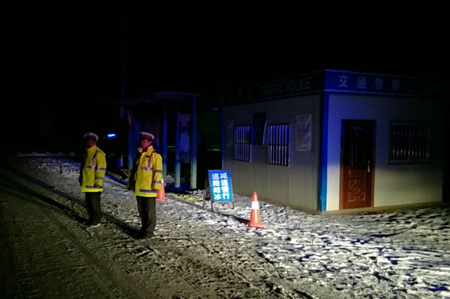 新兴高速大队出动3台警车沿线巡逻,做到途中发现交通事故快速处理,确保现场车辆和行驶车辆的安全;针对冰雪路面,民警迅速铺洒防滑沙,提示车辆减速稳驾慢行。