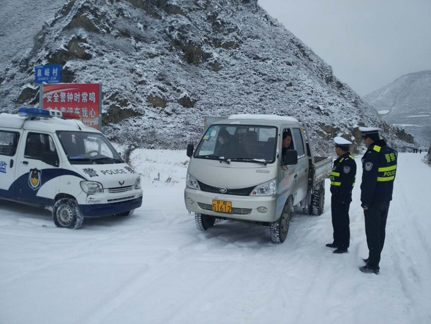 甘谷县公安局交警大队给客运企业下发山区客运车辆停运通知,备齐三防器材;全员上路设置临时执勤点,督促上山车辆加装防滑设备;发布预警信息,微信群转发雪天安全提示,通过“大喇叭”宣传,强化群众出行安全意识;通知乡镇交管站加强道路巡逻,全面启动各劝导站,严查违法载人等行为。