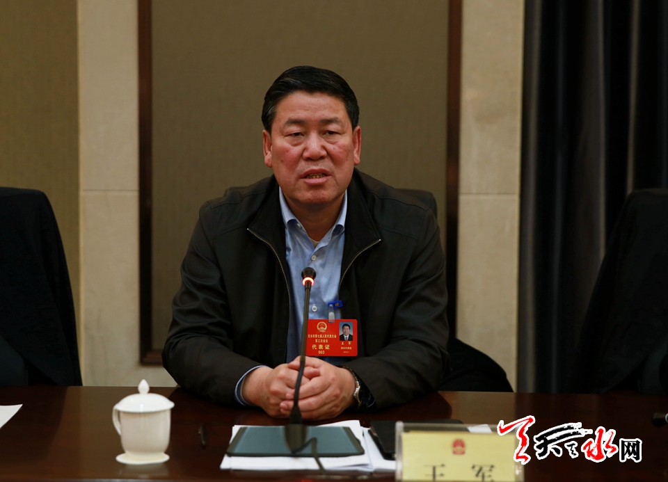 天天天水网讯【全媒体记者吴丽娜 何永德 杨旭】1月5日下午,市委副书记、市长王军在参加市七届人大三次会议清水代表团审议时强调,要深入贯彻党的十九大精神和习近平新时代中国特色社会主义思想,坚持稳中求进的工作总基调,积极作为,抢抓机遇,奋力进取,切实抓好各项目标任务落实,实现全市经济社会各项事业又好又快发展。