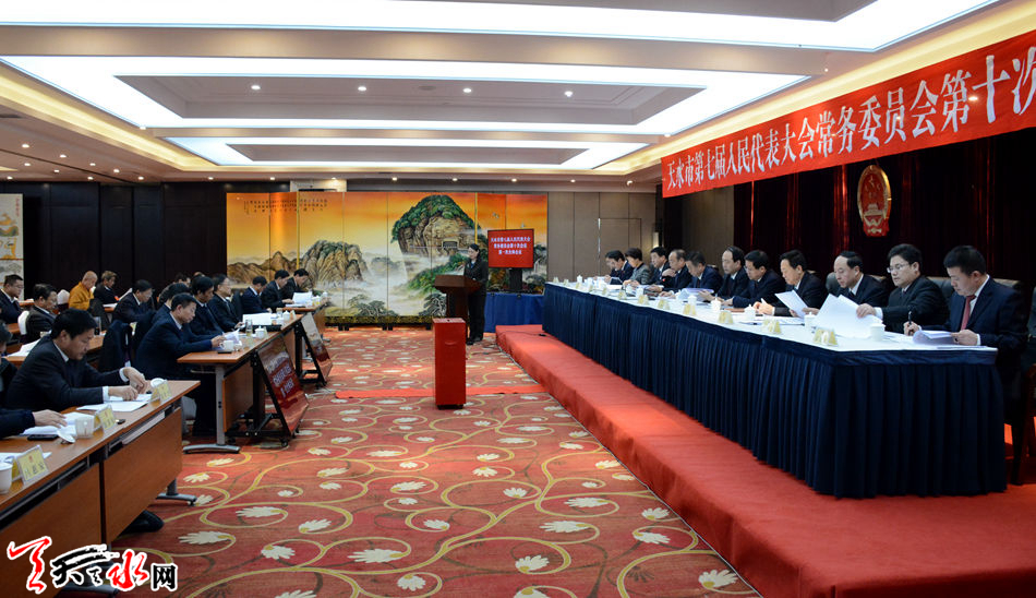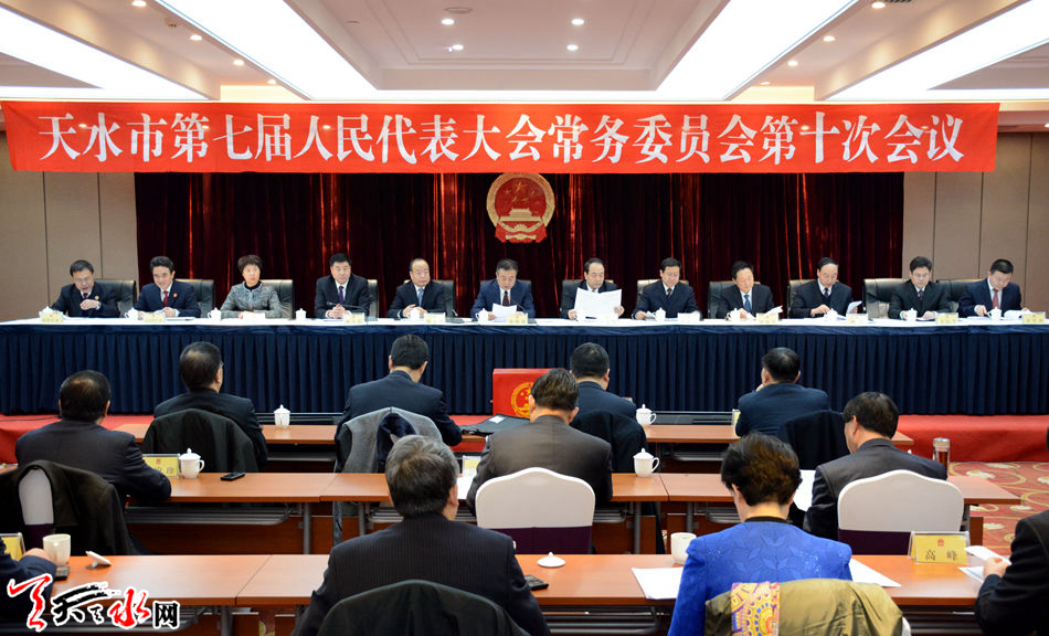 天天天水网讯【全媒体记者马放】1月10日,市第七届人民代表大会常务委员会第十次会议在天水宾馆召开。市人大常委会党组书记、主任蒋晓强,市人大常委会副主任刘天波分别主持了第一、二次全体会议。
