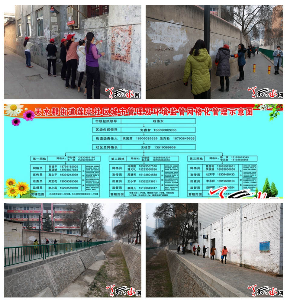 为确保全域无垃圾创建工作扎实有序开展,在此次活动中,莲亭社区社区成立专门的领导小组,进一步明确工作职责,制定出台了《社区全域无垃圾工作实施方案》,并加大对辖区内集中居住的居民小区内乱搭乱建行为的整治,达到“一树”“一改”“两加强”“三提升”的目标。与此同时,为了使环保政策深入人心,社区积极协调辖区内企事业单位,充分利用辖区单位的电子显示屏、黑板报、宣传专栏等多种宣传工具,多角度、全方位地对《天水市秦州区全域无垃圾创建工作实施方案》、《天水郡街道办事处全域无垃圾创建工作实施方案》进行滚动式宣传,营造了浓厚的社会氛围。
