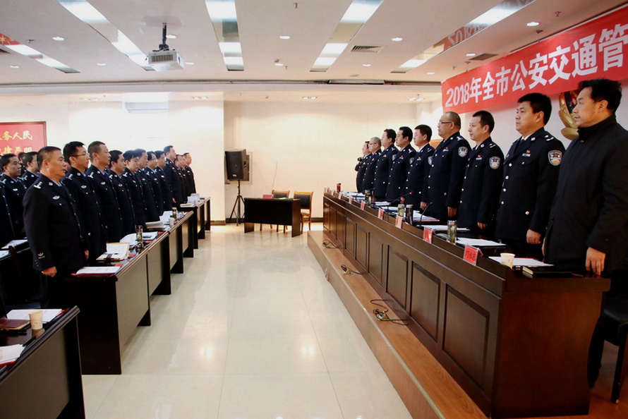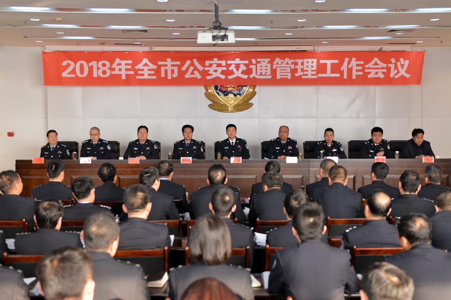 市政府党组成员、市公安局党委书记、局长马瑛出席会议并作讲话,市公安局党委委员、副局长霍宝珊主持会议并代表市局与各县区公安(分)局签订《2018年全市交通管理重点工作目标责任书》,市公安局党委委员、交警支队支队长柳润泰回顾总结2017年全市公安交通管理工作,安排部署2018年全市公安交通管理重点工作,市公安局交警支队政委毛建民宣读表彰全市交通管理工作先进单位决定。