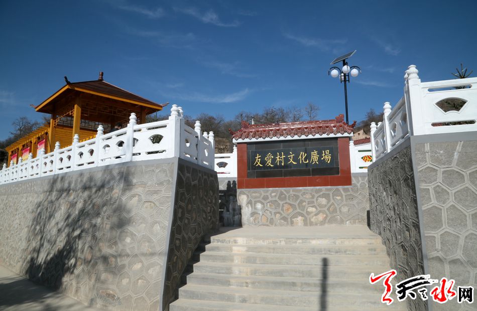 友爱村文化广场建设严格按照“七个一”建设标准,于2017年4月开始施工建设,10月底建成。广场占地面积1240平方米。其中建设乡村舞台60平方米,文化活动室50平方米。广场布置以社会主义核心价值观和十九大精神为主题,核心价值观醒目的展示在背景墙上,走廊和宣传栏上呈现了十九大精神、村规民约、村务公开等,是一个集美化、亮化、文化娱乐、体育健身、科普服务为一体的农村综合文化广场。极大的丰富了群众的文化娱乐生活,成为群众农闲时的议事台、活动场、休闲园,为群众参与评议村务、了解党的十九大精神、及各项惠民政策、学习宣传知识搭建了平台。