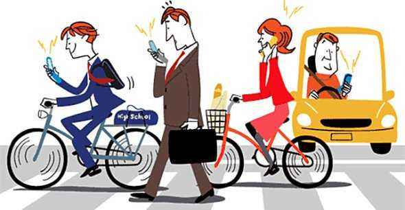 路上玩手机现象屡见不鲜