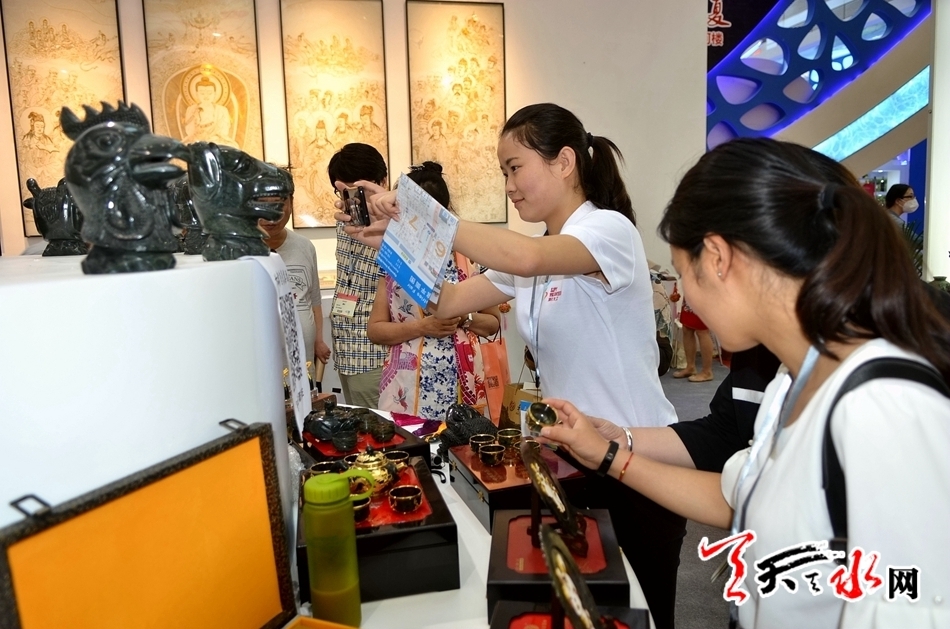 ▲深圳文博会甘肃馆展台上的“天水元素”受追捧