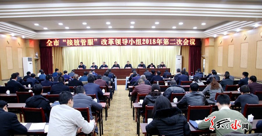 天天天水网讯【记者童强】1月22日,市“接放管服”改革领导小组召开2018年第二次会议,学习贯彻最近省上关于“接放管服”改革工作系列会议精神,安排部署全面做好深化“接放管服”改革各项工作。市委常委、常务副市长赵卫东出席会议。
