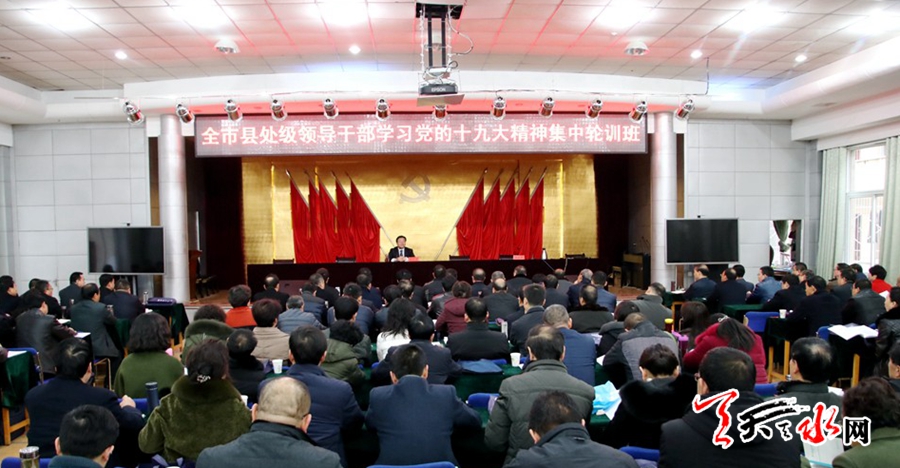 天天天水网讯【记者闫波】1月23日,市委常委、副市长李晓东在全市县处级领导干部学习贯彻党的十九大精神轮训班上为全体学员作了十九大精神专题辅导报告。