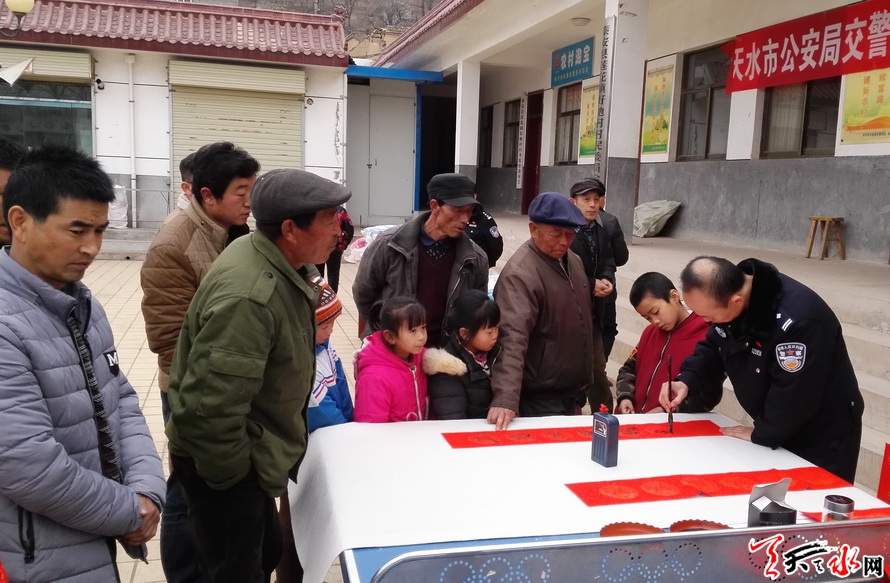 在好地村村委会,支队组织三名帮扶民警为好地村村民书写春联,为他们送上新春的祝福。帮扶民警不畏严寒,现场书写春联300余副,得到了村民的一致好评。