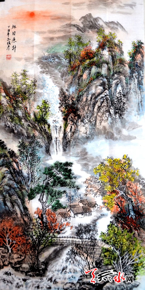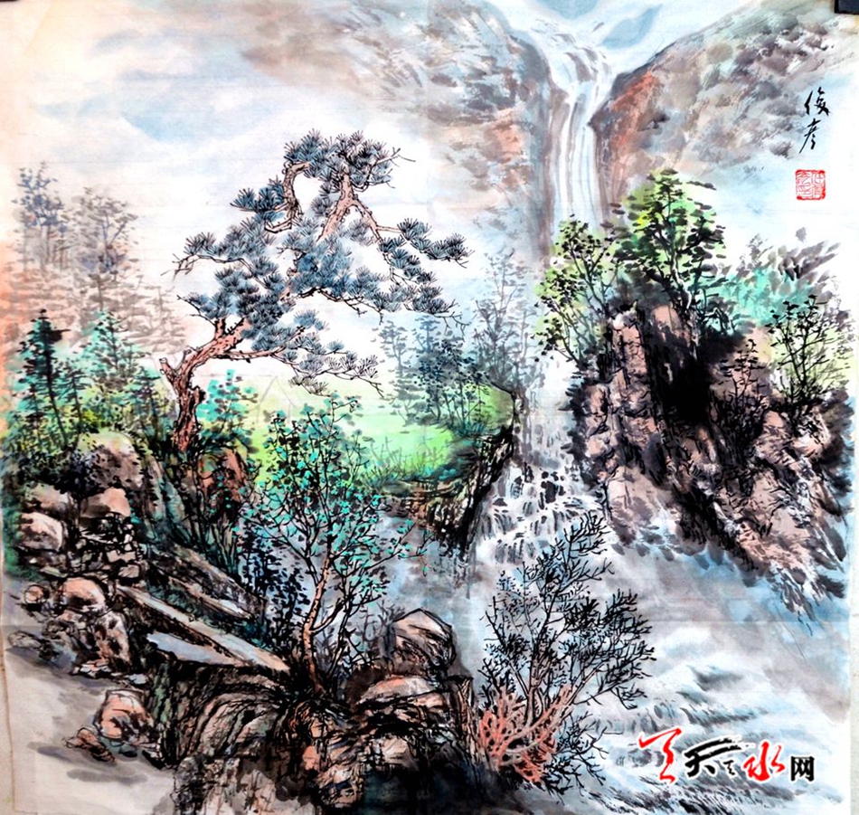 任俊彦几十年如一日,追随历代名家足迹,从中汲取精华,经过千锤百炼,终于形成了天水田园山水画的艺术风格,他的作品在2016年获得庆祝中国共产党成立95周年中国邮政邮票发行;2017年他的作品获得书画艺术榜样人物、中国文化进万家工作委员会、全国名人书画艺术界联合会联办的台历出版。
